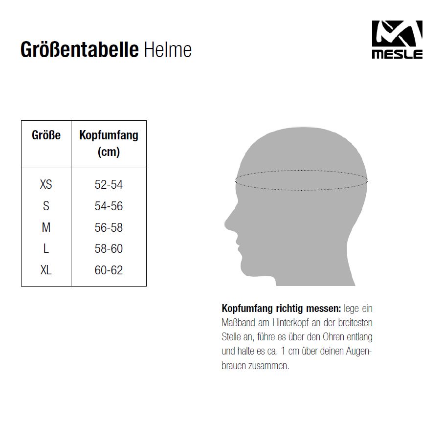 - GRÖẞEN: (Kopfumfang): XS (52-54 cm), S (54-56 cm), M (56-58 cm), L (58-60 cm), XL (60-62 cm), Produktgewicht 445 g