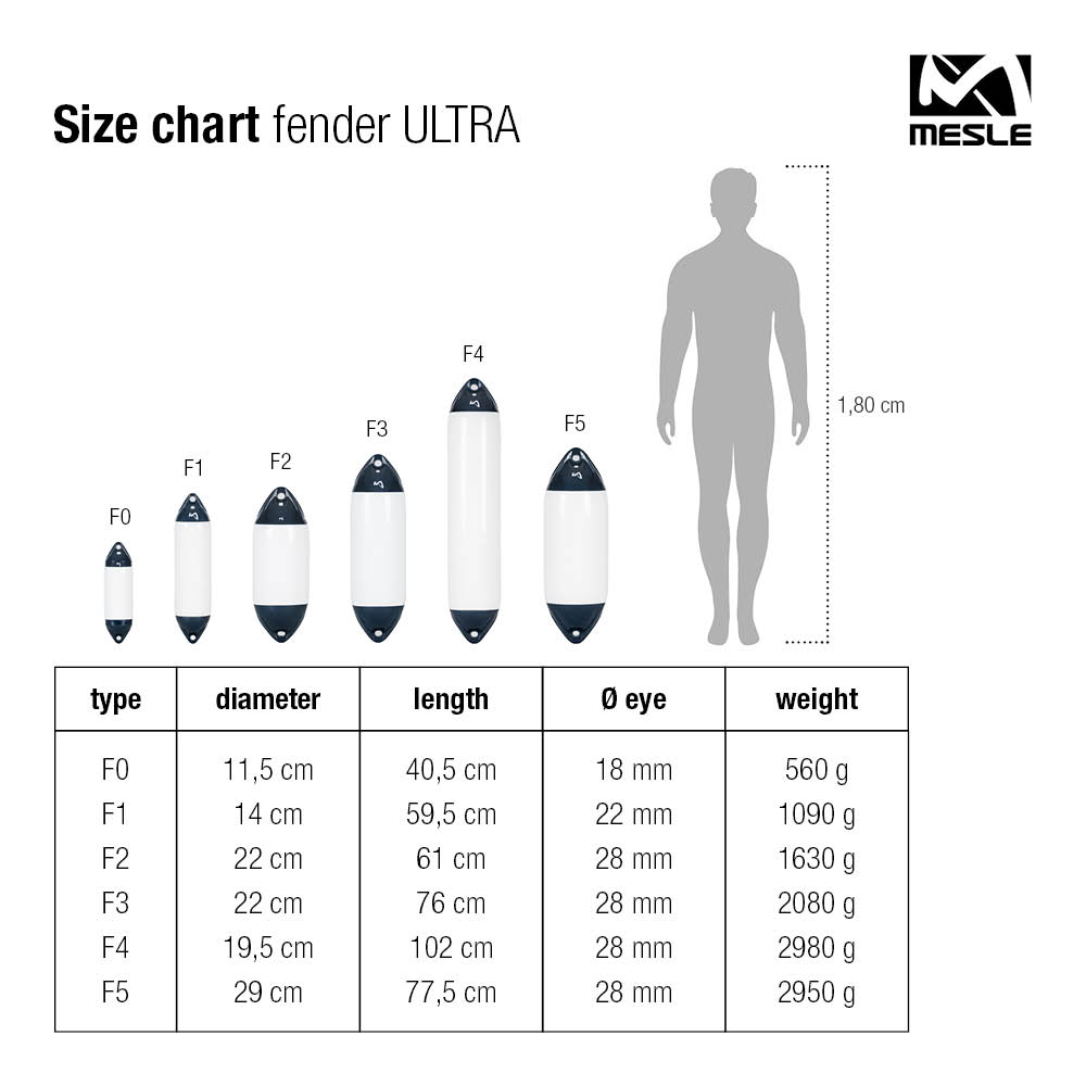 - SIZES: Rope eye between 18 mm - 28 mm diameter, choose the optimum fender size from 6 different diameters & lengths (see size chart)