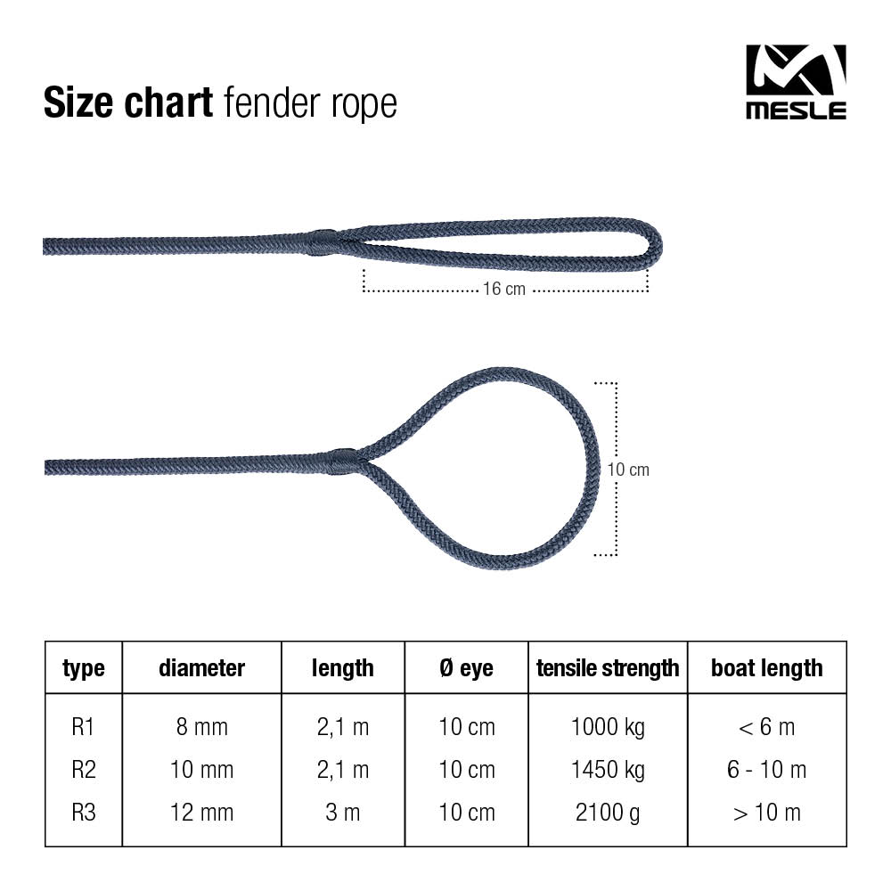 - Diameter: 8 mm | Length: 2.1 m (Boats up to 6 m / Breaking strength: 1000 kg)