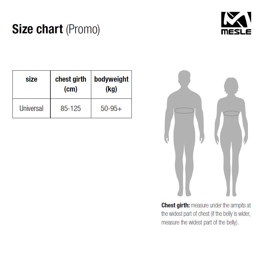 The universal size is ideal for teenagers and adults with a chest circumference of 85-125 cm (50-95+ kg).